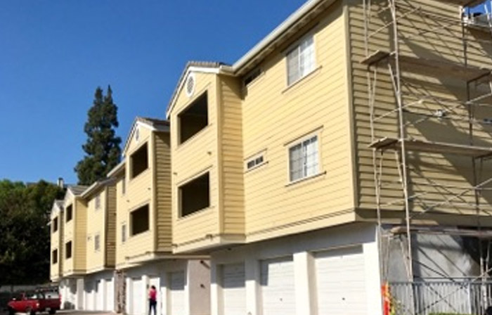 Replace siding and trim, recoat balcony decks, front landings and pool deck, slurry and stripe parking lot, re-roof garage buildings, exterior painting